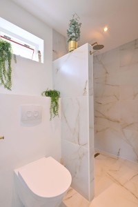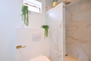 Op de begane grond beschikt het over een inpandige berging en een luxe en moderne badkamer voorzien van een inloopdouche en wastafel. Op de eerste verdieping is een slaapkamer gerealiseerd met een toilet.
