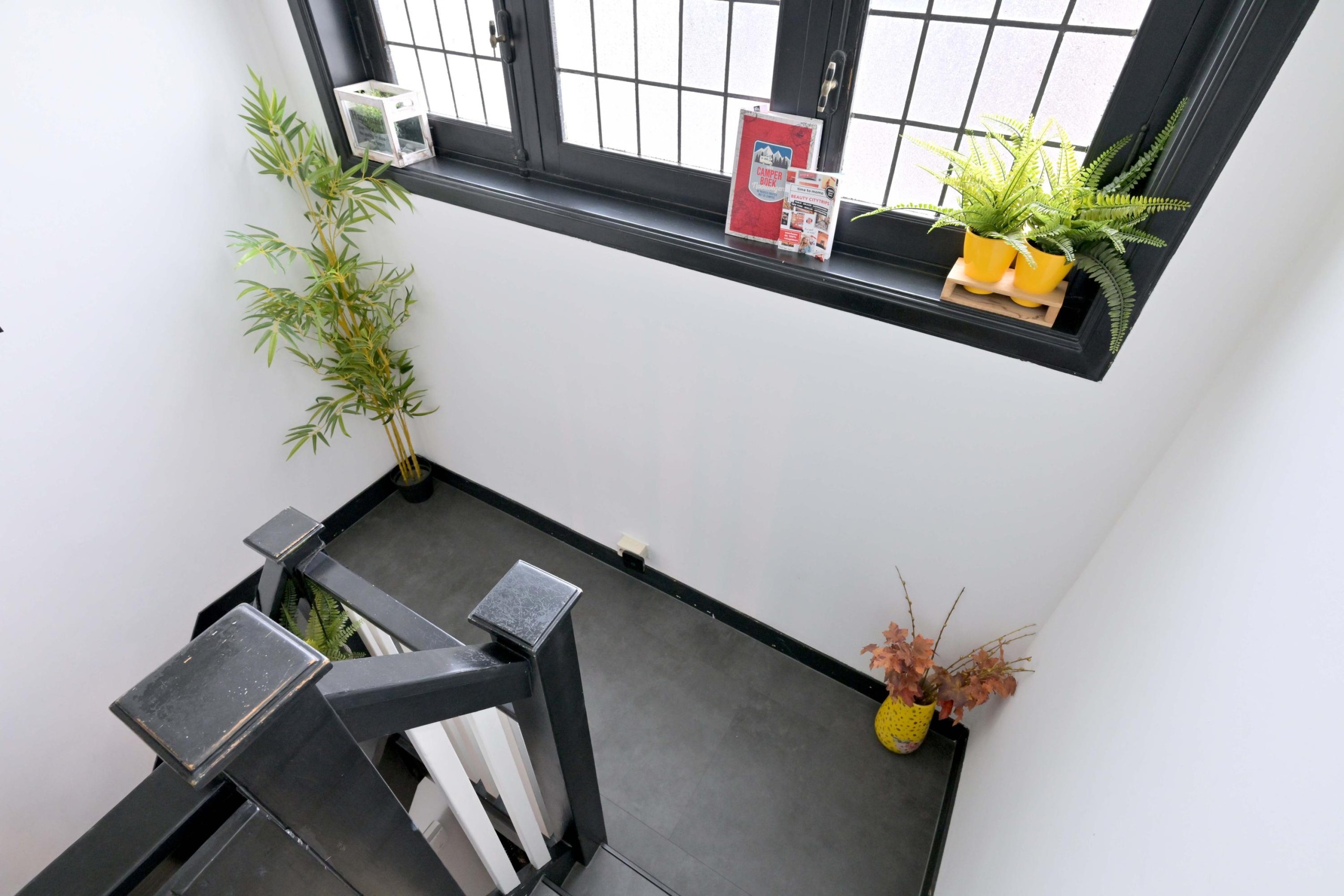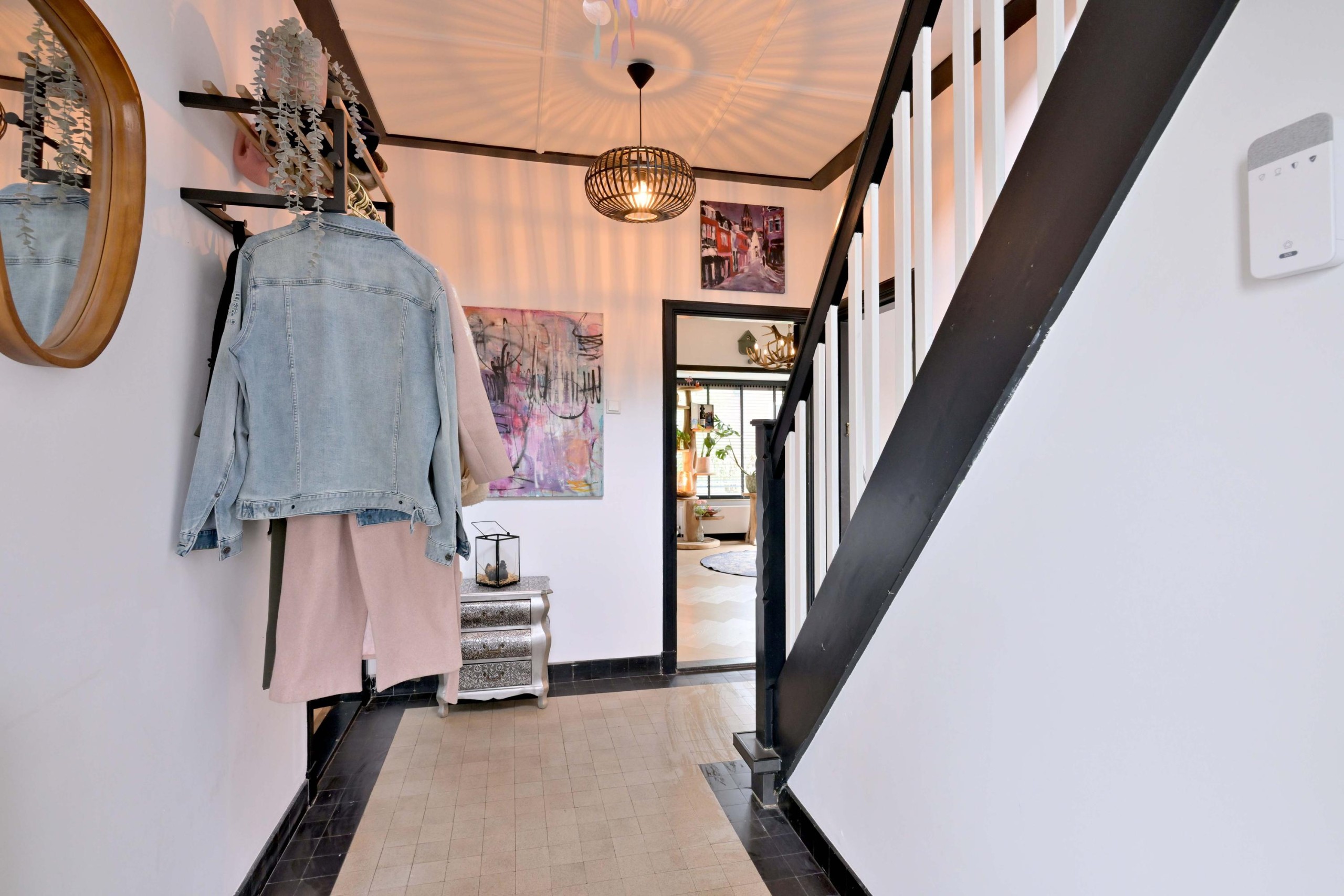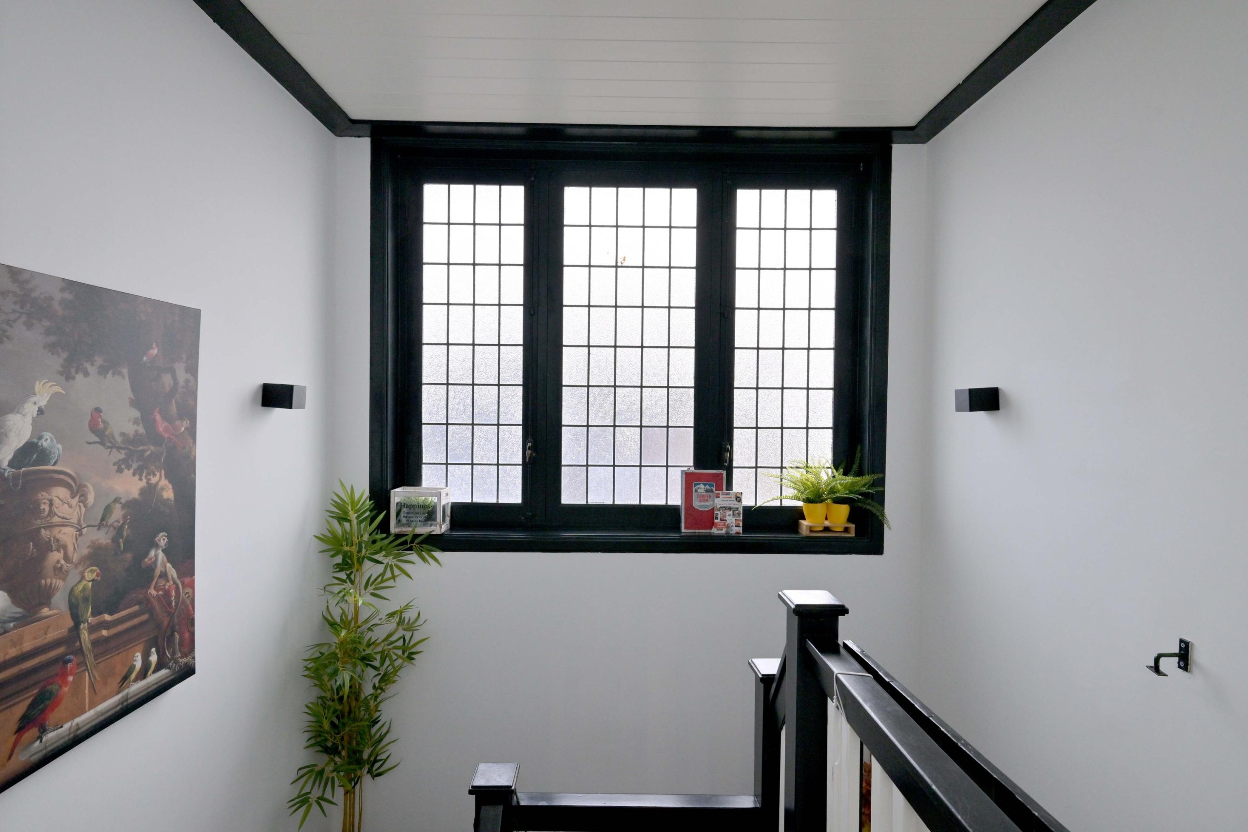 Via de authentieke entree betreedt je de woning. Hier voel je de sfeer meteen door de authentieke bordes trap en het originele glas in lood raam.