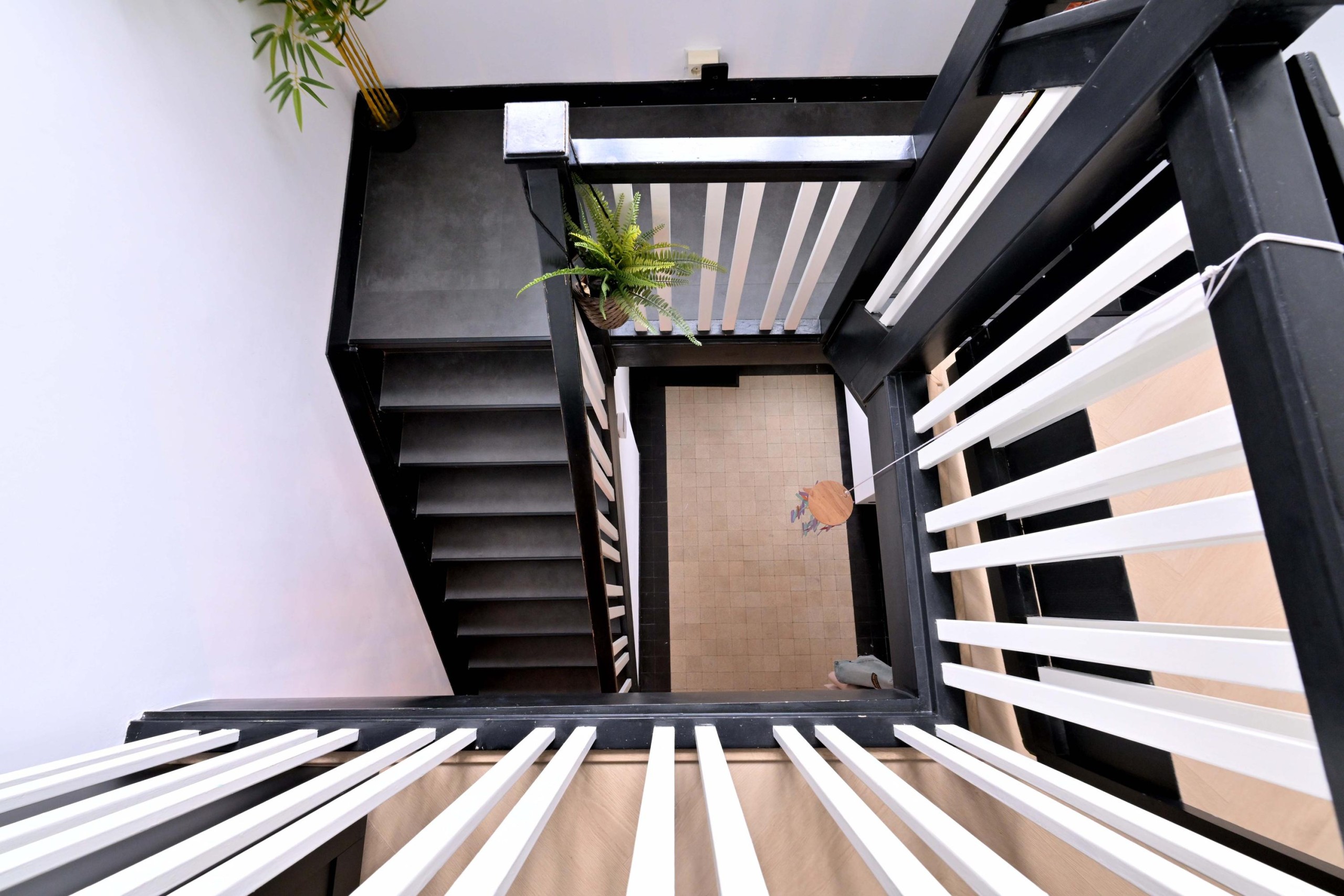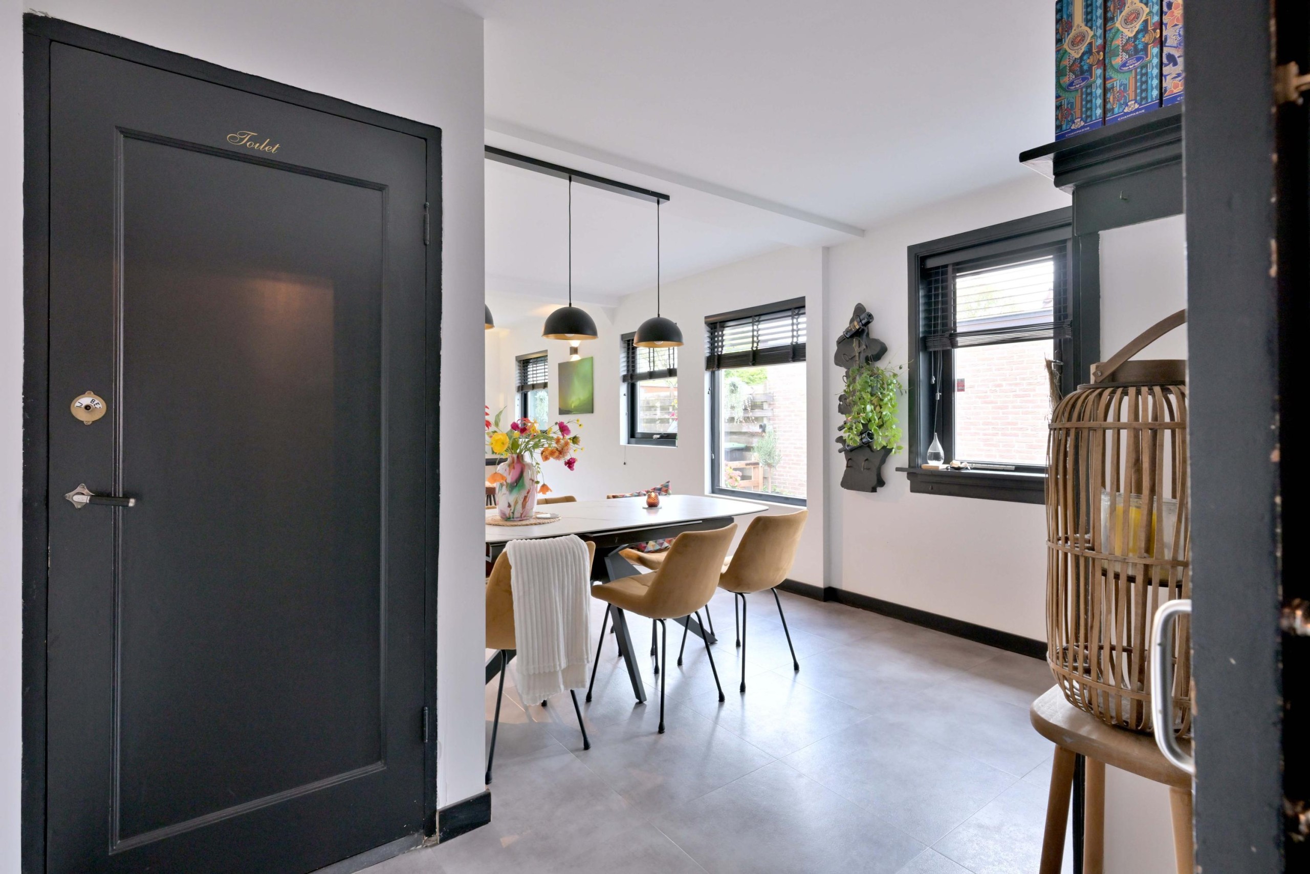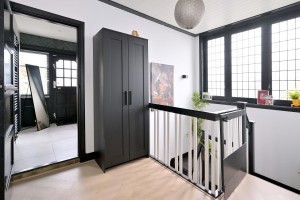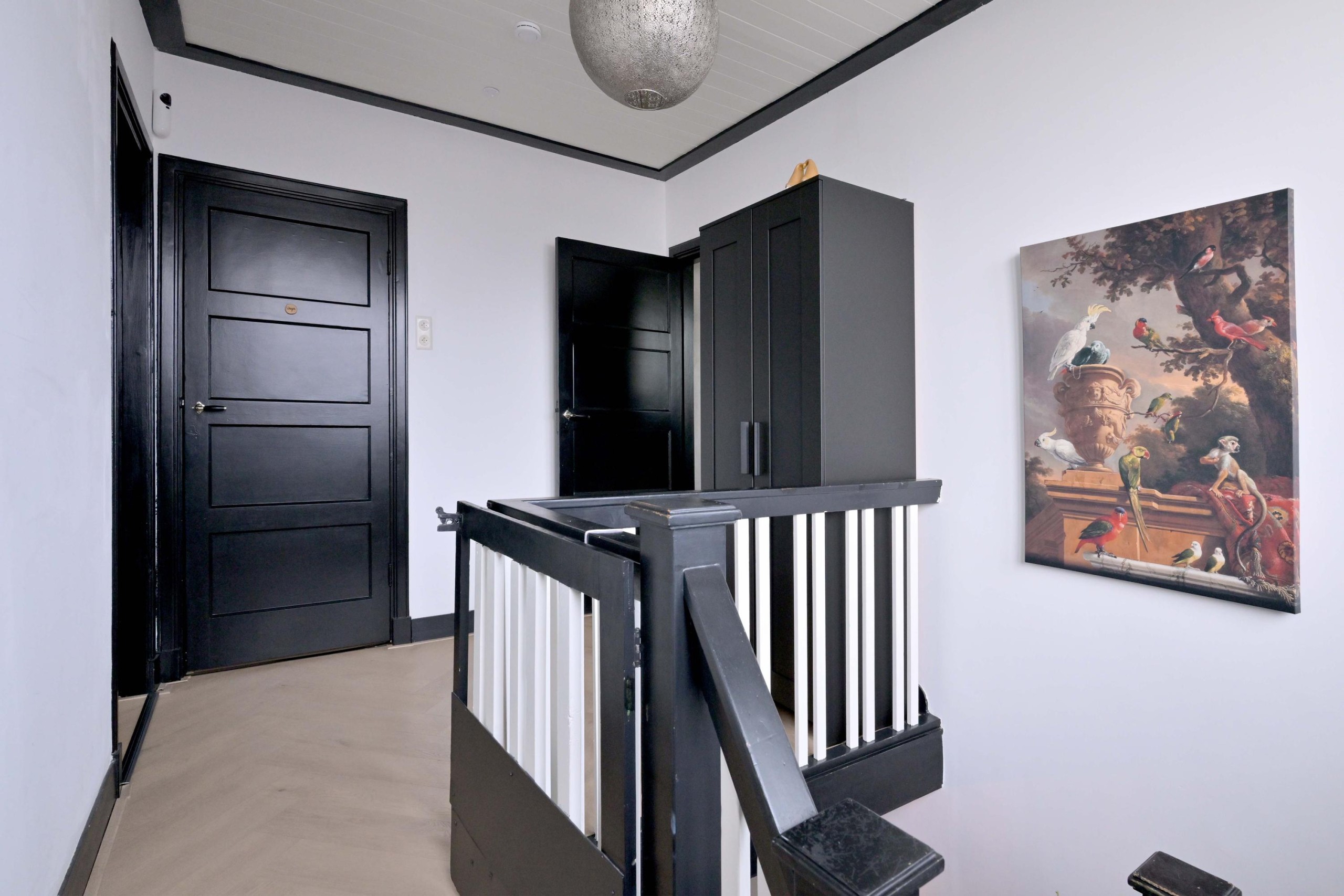 Via de authentieke entree betreedt je de woning. Hier voel je de sfeer meteen door de authentieke bordes trap en het originele glas in lood raam.